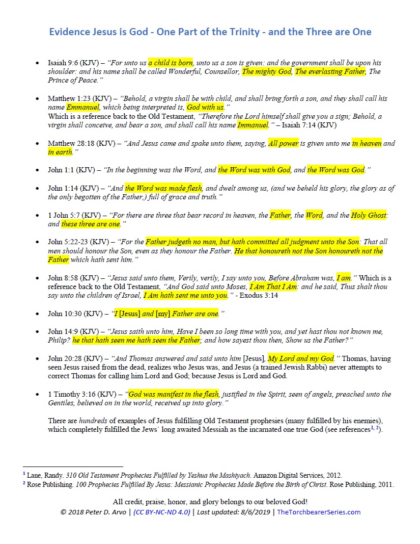 Evidence Jesus is God - One Part of the Trinity - and the Three are One