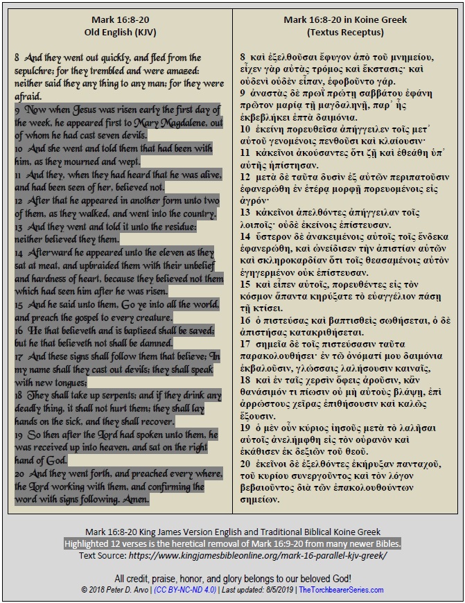 Heretical Removal Mark 16:9-20 from Modern Bibles