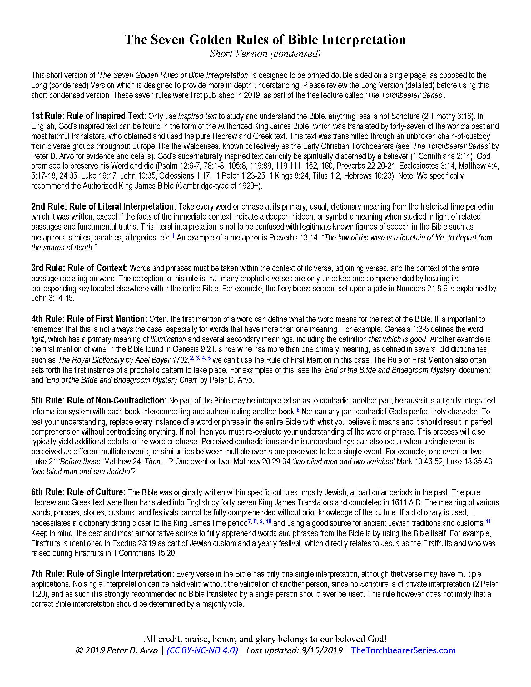 The Seven Golden Rules of Bible Interpretation - Short Version